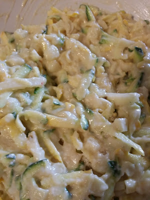 We decided today is the day for Corn and Zucchini Fritters. Actually we are 2 days premature with this decision since the produce stand opens the day after tomorrow, which will be the first day of the season that we can eat fresh locally grown sweet corn.